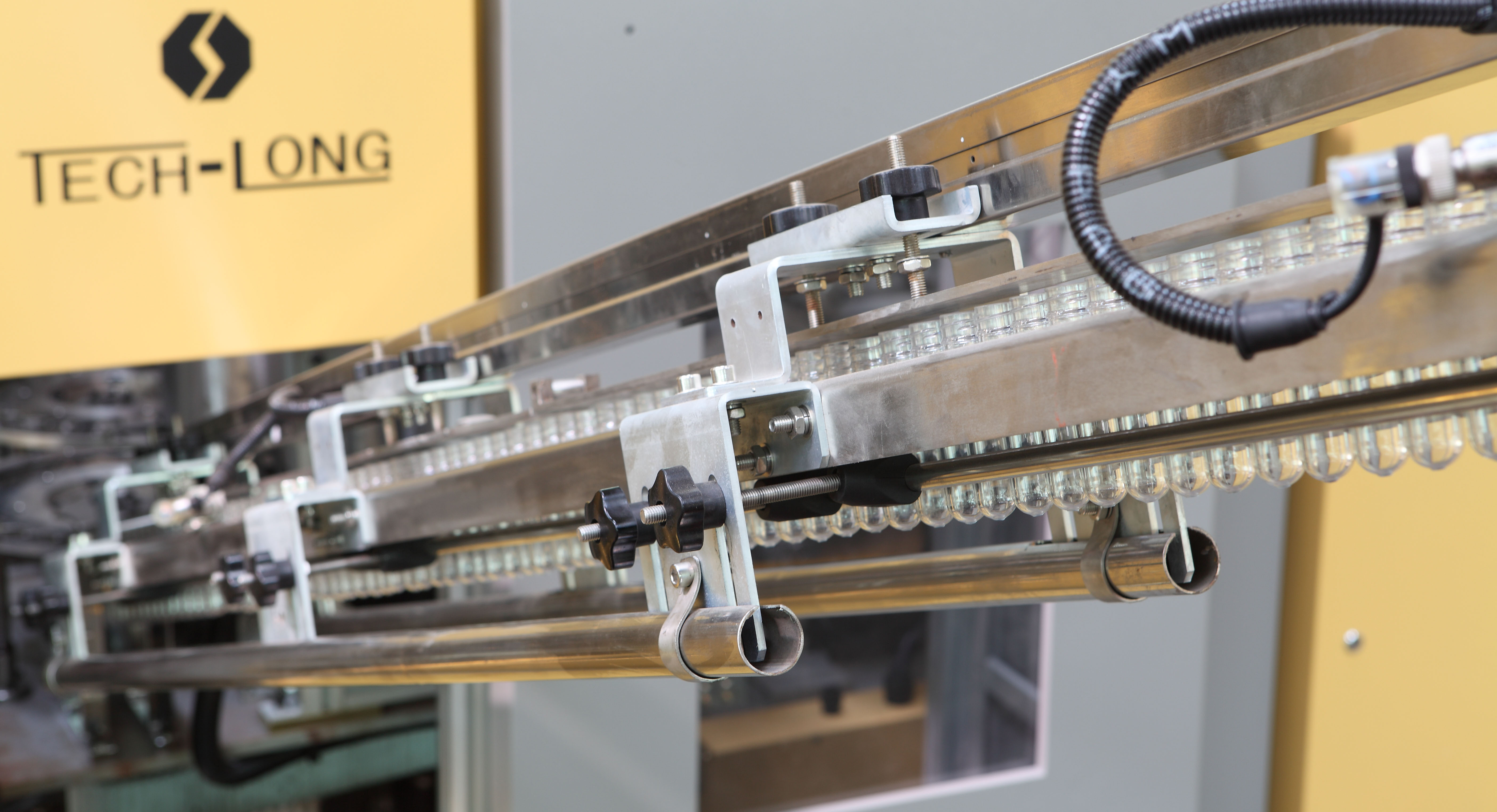 大模腔 CPXD 系列全自動(dòng)旋轉(zhuǎn)式吹瓶機(jī)是達(dá)意隆 采用當(dāng)今最先進(jìn)的制瓶技術(shù)自主開發(fā),主要吹制瓶 容積 4-10L。CPXD 系列全自動(dòng)旋轉(zhuǎn)式吹瓶機(jī)可用 于獨(dú)立完成瓶的吹制或用于灌裝線前面完成瓶的 吹制,還可用于吹灌旋一體機(jī)中瓶的吹制。